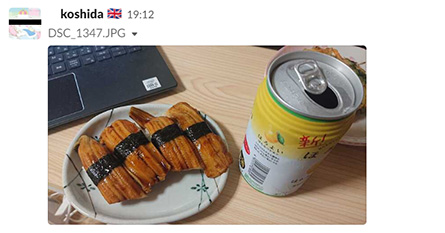 いずれはみんなで集まって、対面でご飯を食べたり、話したり、しりとりしたり、絵を描いたり……(?)色々交流ができたらなあと思いつつ、今は手洗いうがいやこまめな消毒など自分に出来ることを精一杯やっていきつつ、今後もこうした、社員の皆さんが(そして上田自身も)「在宅勤務の中で楽しめる」リモート企画を考えて、開催していきたいと思っています。