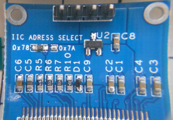 左上に、IIC ADRESS SELECT とあって、 左側に0x78、右側に0x7Aと印刷されている。